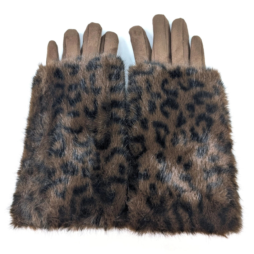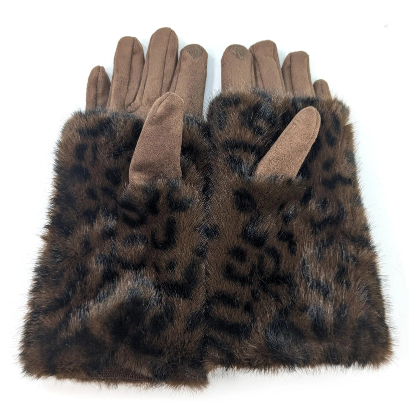 Super Fluffy Faux Fur Two-in-One Gloves - Brown Animal Print